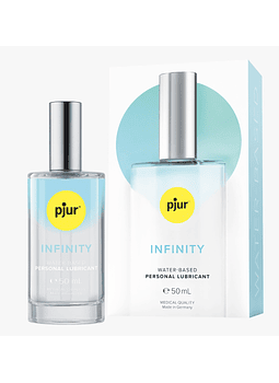 Lubricante premium en envase de vidrio con valvula dosificadora. Elegancia y maxima calidad. Tu regalo prefecto si quieres experimentar un placer "Infinito" Experiencia, Sensación, Aventura. La fórmula a base de agua brinda a los usuarios una dosis extra de sensación y un sinfín de oportunidades para descubrir algo nuevo. Perfecto para utilizar con juguetes sexuales. Sumérgete en el placer infinito En pjur queremos ayudarte a redescubrir tu pasión y alegría, permitirte disfrutar del sexo sin preocupaciones y aumentar tu bienestar sexual. Somos una fuerza inspiradora quete anima a conocerte a tí mismos y a abrazar tu vida sexual libre de tabúes. Como proveedor líder de productos íntimos de primera calidad "Made in Germany" estamos orgullosos de presentarle pjur INFINITY, un lubricante de alta gama espcialmente fabricado para personas que desean más.